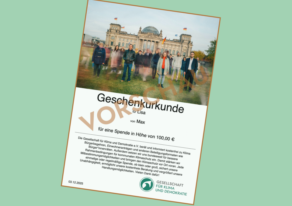 Schenke eine Spende: Unterstütze Projekte, die Demokratie stärken und den Klimaschutz voranbringen – ein Geschenk mit echter Wirkung.
